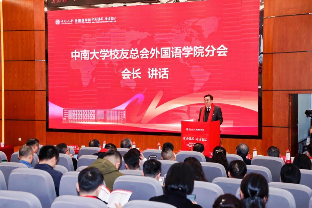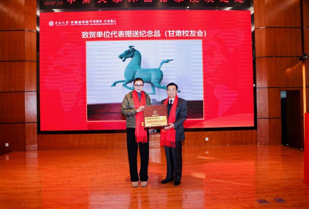 中南大學教育發(fā)展與校友事務辦公室主任余文武為外國語學院校友分會授牌。