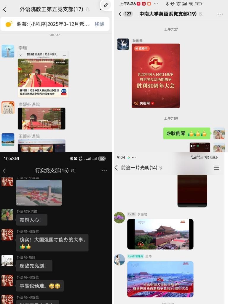 觀看結(jié)束后,學(xué)院各黨支部共同學(xué)習(xí)習(xí)近平總書記在紀(jì)念大會上的重要講話精神,結(jié)合抗戰(zhàn)歷史與當(dāng)前時代使命開展學(xué)習(xí)研討。師生黨員們踴躍發(fā)言,分享心得體會。