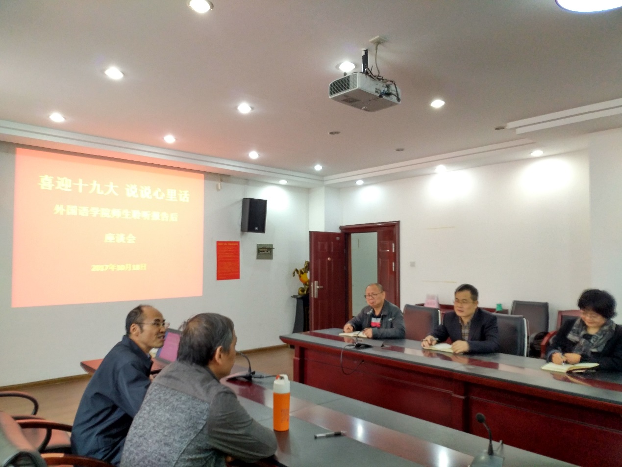 在其他師生發(fā)言后,陳廣程書記最后對座談會作了總結,并就如何學習黨的十九大精神提出了要求。希望全體師生認真學習領會十九大報告精神,以務實作風主動學習、組織學習、結合本職學習、循序漸進,胸懷理想、堅定信念、勇于擔當、踐行社會主義核心價值觀。希望廣大外語院學子積極適應社會的發(fā)展變化,提高個人創(chuàng)新能力,不斷學習新知識、掌握新技能、增長新本領、開闊新視野,努力成長為對國家、對社會、對人民有用的棟梁之才。