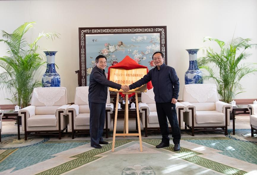 2023年11月17日, 中南大學(xué)外國語學(xué)院黨委書記李濤、副院長仲文明、鄢宏福,英語系黨支部書記陳潔、英語系教師王曉東、郭薇、田莎一行七人一行七人來到秦始皇帝陵博物院,就進(jìn)一步深化館校合作和人才培養(yǎng)事宜開展互動交流,并為“中南大學(xué)—秦始皇帝陵博物院人才聯(lián)合培養(yǎng)省級示范基地”揭牌。秦始皇帝陵博物院黨委書記、院長李崗,黨委副書記、副院長田靜及社會教育部、黨政辦公室相關(guān)人員參加活動。