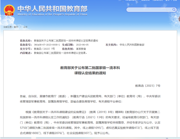 根據(jù)近期《教育部關(guān)于公布第二批國家級一流本科課程認(rèn)定結(jié)果的通知》,外國語學(xué)院有4門課程被認(rèn)定為國家級一流本科課程。其中兩門為線上一流課程:“綜合英語”(李瑤教授團(tuán)隊(duì))和“新聞英語”(李麗君副教授團(tuán)隊(duì)),一門為線下一流課程:“中西文化專題”(傅曉燕教授團(tuán)隊(duì)),一門為線上線下混合式一流課程:“實(shí)用英語寫作”(陳潔教授團(tuán)隊(duì))。