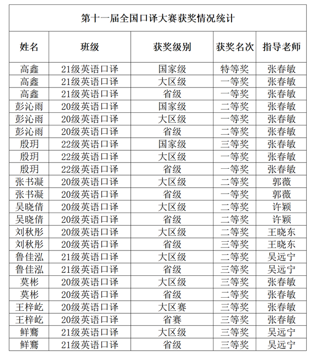 我院學(xué)子喜獲第十一屆全國口譯大賽特等獎(jiǎng)