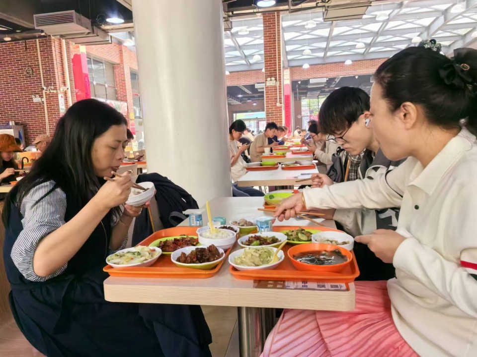 正午時分,校友們前往學生六食堂,這里是他們學生時代的美好回憶之一。六食堂緊鄰大禮堂,校友們在此享用午餐,探尋學生時代的味道和記憶。食堂內,熟悉的菜肴和熱鬧的氛圍讓校友們穿越到了那個充滿活力的青年時代,仿佛聽到從食堂二樓舞廳傳來的音樂聲。這穿越時間長河的旋律,觸動了校友們的心靈,喚起了他們對校園生活的美好回憶和對青春時光的懷念。那一刻,他們覺得自己從未真正離開過這個充滿記憶的地方。