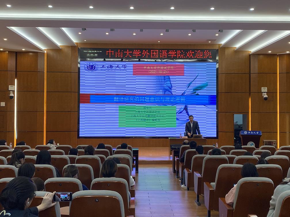 10月21日下午,《上海翻譯》執(zhí)行主編、上海大學外國語學院博士生導師傅敬民教授應邀為我院師生作了題為《翻譯研究的問題意識與理論邏輯》的學術講座。我院范武邱副院長致歡迎辭,仲文明副教授主持,楊文地副院長等學院領導與全院兩百余名師生參加。??講座分“翻譯研究的問題焦慮”和“翻譯研究的理論邏輯”兩部分。第一部分,傅教授深入剖析了當下翻譯研究人員問題焦慮的五重原因,即:自身理論知識與實踐經(jīng)驗不足;問題復雜,...