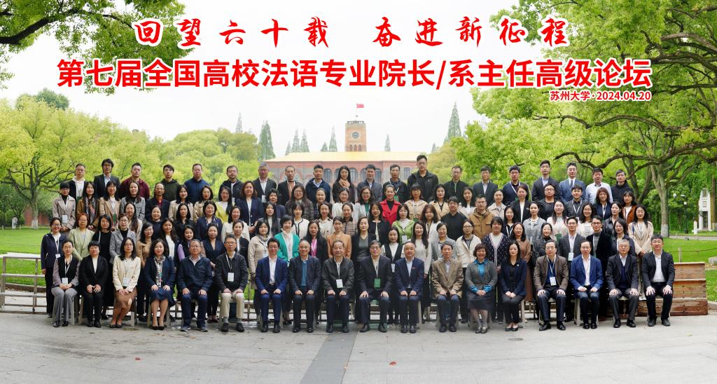 4月20日,第七屆全國高校法語專業(yè)院長/系主任高級論壇在蘇州大學(xué)成功舉辦。本次論壇由教育部高等學(xué)校外國語言文學(xué)類專業(yè)教學(xué)指導(dǎo)委員會法語分委員會、中國法語教學(xué)研究會、上海外國語大學(xué)和蘇州大學(xué)主辦,上海外語教育出版社承辦。來自全國各地80余所院校的近百位法語專業(yè)院長、系主任和學(xué)科負(fù)責(zé)人參加了本次論壇,我院法語系主任夏高琴出席。論壇聚焦中法建交60周年,以“回望六十載 奮進(jìn)新征程”為主題,邀請了教指委法語分...