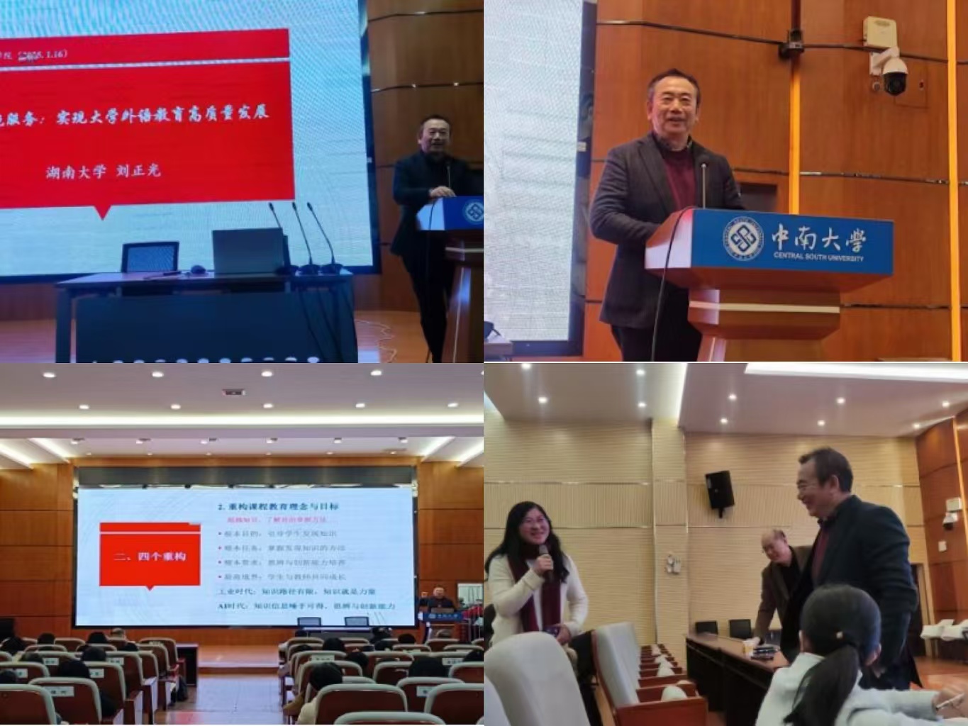 ??2025年1月16日下午,全國(guó)大學(xué)外語教學(xué)指導(dǎo)委員會(huì)委員、中國(guó)英漢語比較研究會(huì)副會(huì)長(zhǎng)、湖南省外語課程思政聯(lián)盟主任委員、湖南大學(xué)外國(guó)語學(xué)院劉正光教授應(yīng)邀來我院,以“重構(gòu)擁抱服務(wù):實(shí)現(xiàn)大學(xué)外語教育高質(zhì)量發(fā)展”為題,作了精彩的講座。講座由楊文地院長(zhǎng)主持,大學(xué)外語中心全體教師和部分專業(yè)系教師參加。講座中,劉正光教授指出,大學(xué)外語教師目前面臨人工智能技術(shù)、社會(huì)輿論、湖南省的學(xué)科優(yōu)化調(diào)整三大挑戰(zhàn),但是挑戰(zhàn)也是機(jī)...